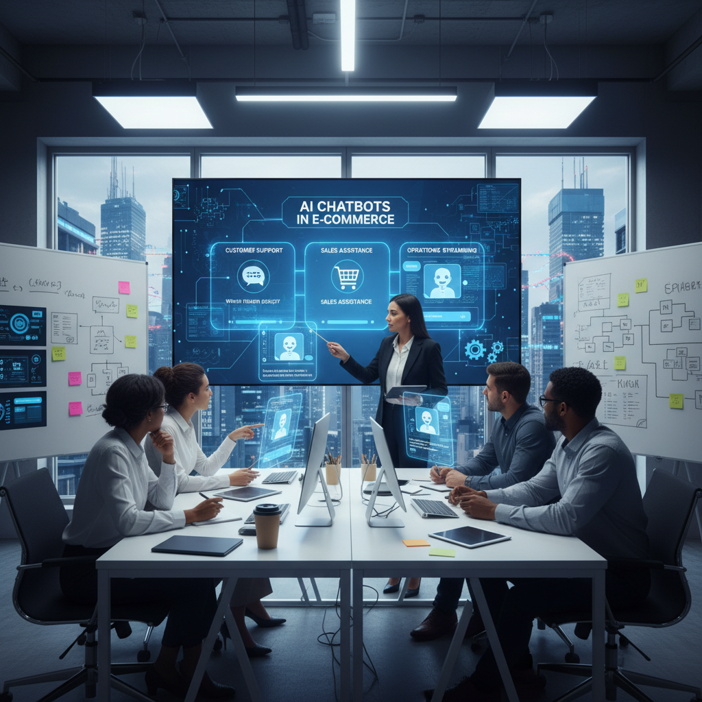 Zespół wdrażający AI w sklepie internetowym podczas spotkania projektowego – ewolucja automatycznej obsługi klienta na platformach e-commerce
